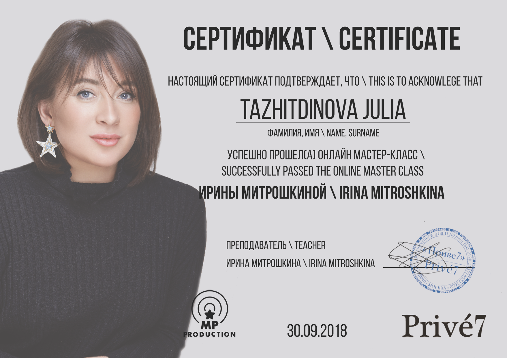 - Advanced Professional Makeup course by Elena Bogdanovich (2020)